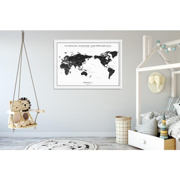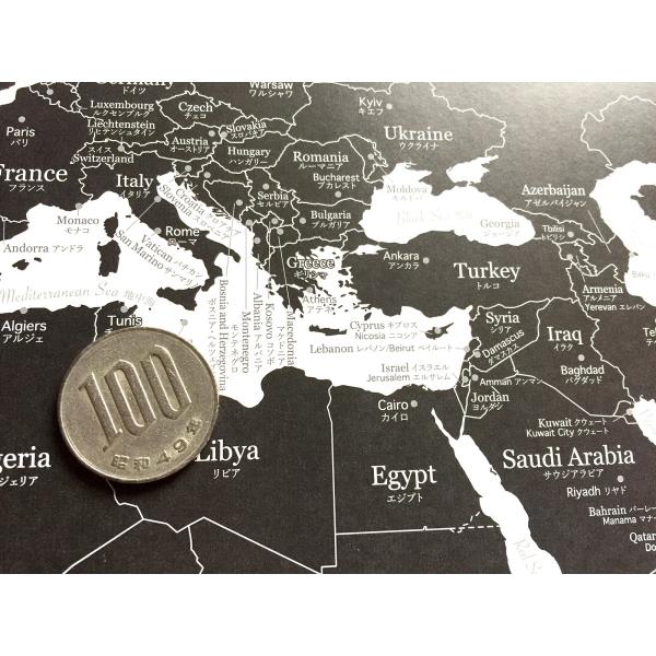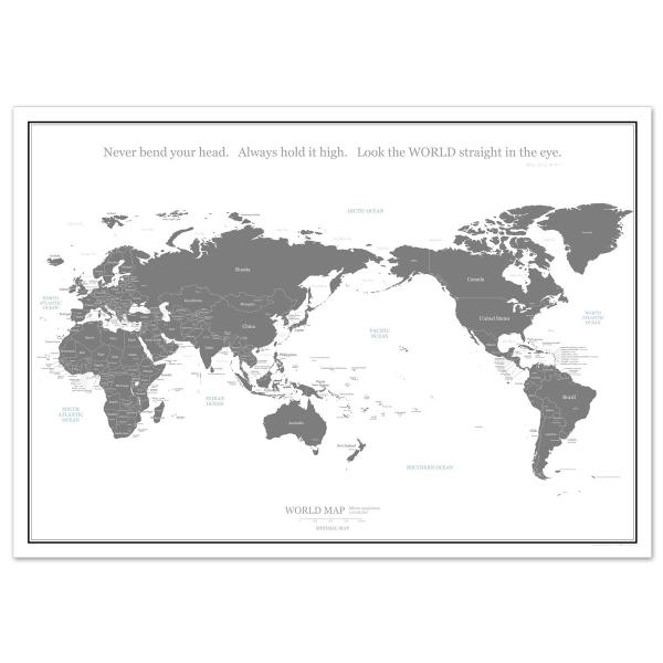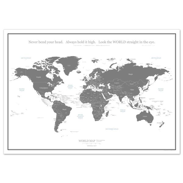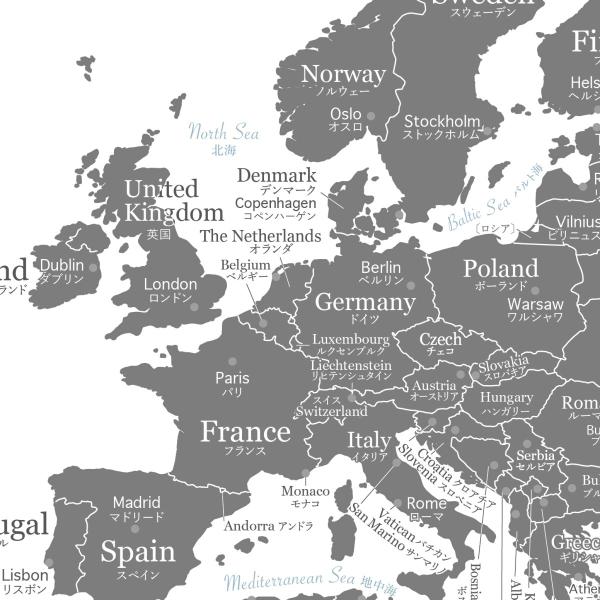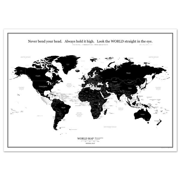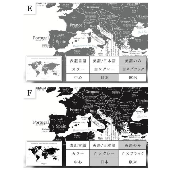 C〜F 世界地図 A1 グレー ブラック ポスター インテリア おしゃれ 国名 白地図 こども 壁 ミニマルマップ