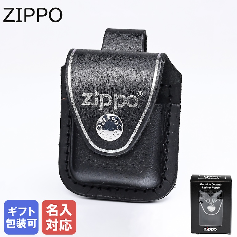 ZIPPO 専用ケース ジッポー用 レザーポーチ ブラック ボタン留め LPLBK 箔押し 名入れ可有料