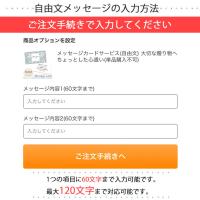 ■買い物かごへ商品と一緒に入れて頂き、手続き途中にある入力欄へメッセージをご入力ください。