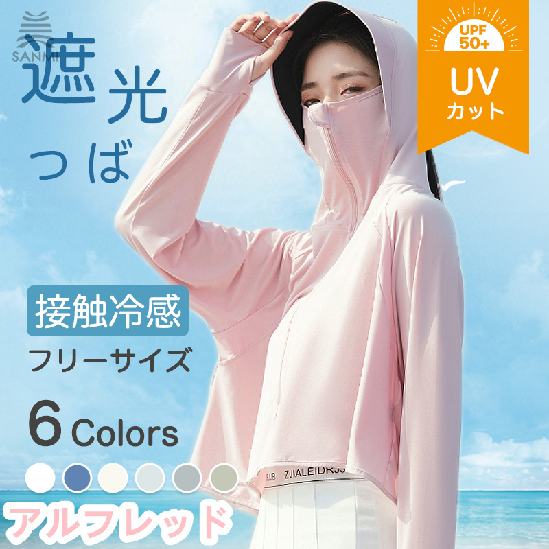 ラッシュガード レディース 長袖 遮光つば 接触冷感 ラッシュパーカー フード付 UPF50+ UVカット率99% 紫外線対策 日焼け 紫外線カット ワンサイズ