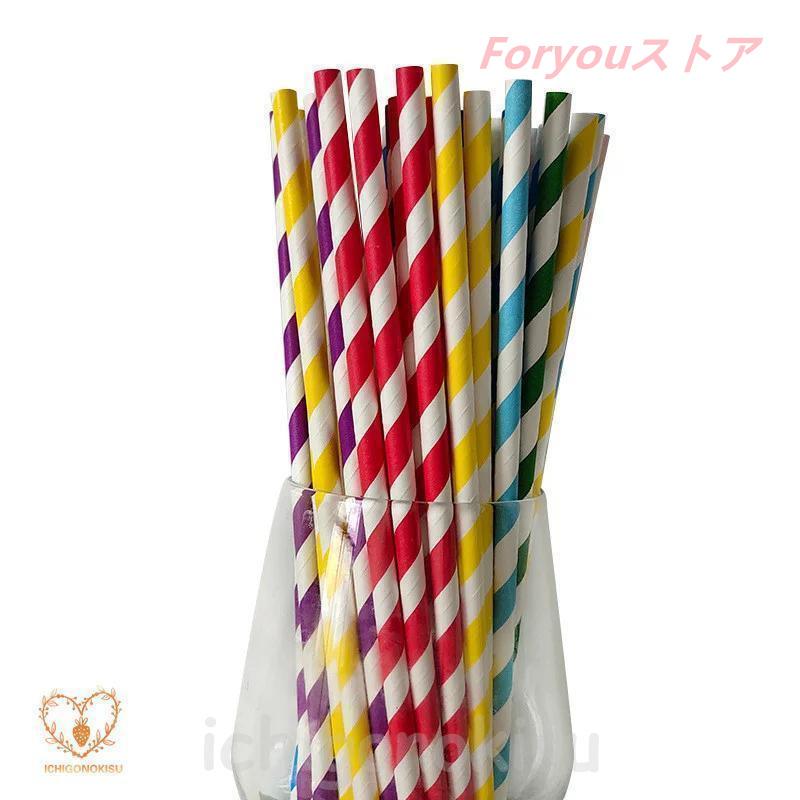 紙ストロー ストロー 直径6mm 100本入り 業務用 使い捨て ペーパーストロー 使い捨てストロー 衛生的 長持ち カラフル 多色 紙製 アウトドア パーテ