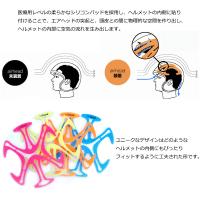 主にジェットタイプヘルメットの内側に貼り付けることで、ヘルメットと頭皮の間にできる突起層を空気が流れ、こもりがちな臭いや湿気を軽減。