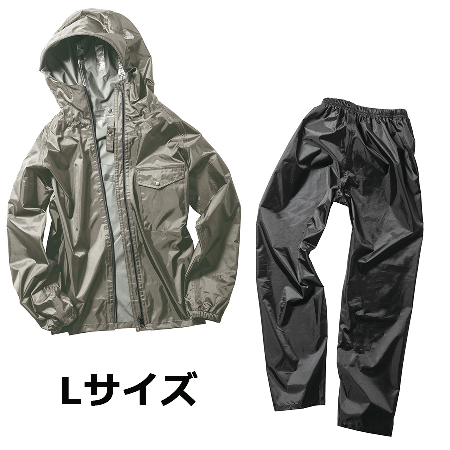 回転フード レインコート グレージュ×ブラック Lサイズ 上下セット 耐水圧10000mmH2O メンズ レディース 兼用 オールシーズン