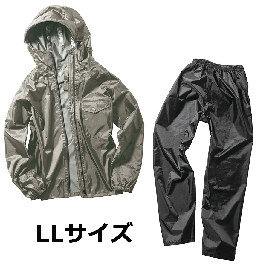 回転フード レインコート グレージュ×ブラック LLサイズ 上下セット 耐水圧10000mmH2O メンズ レディース 兼用 オールシーズン