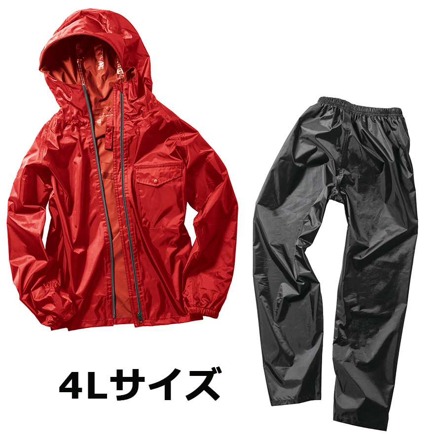 回転フード レインコート レッド×ブラック 4Lサイズ 上下セット 耐水圧10000mmH2O メンズ レディース 兼用 オールシーズン
