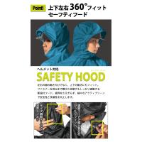 自転車乗車時の前後左右確認を安全にサポート 360度上下左右の動きに回転するセーフティフード付き ヘルメット対応 防水 レインコート レインスーツ S M L LL EL 19L 大きいサイズ カッパ レインウェア バイク 自転車 アウトドア 登山 釣り 通勤 通学 合羽
