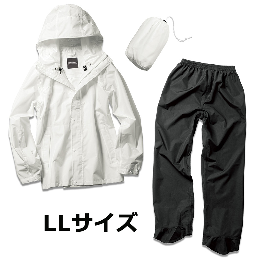 自転車 ヘルメット対応 レインコート ホワイト LLサイズ 上下セット 耐水圧10000mmH2O メンズ レディース 兼用