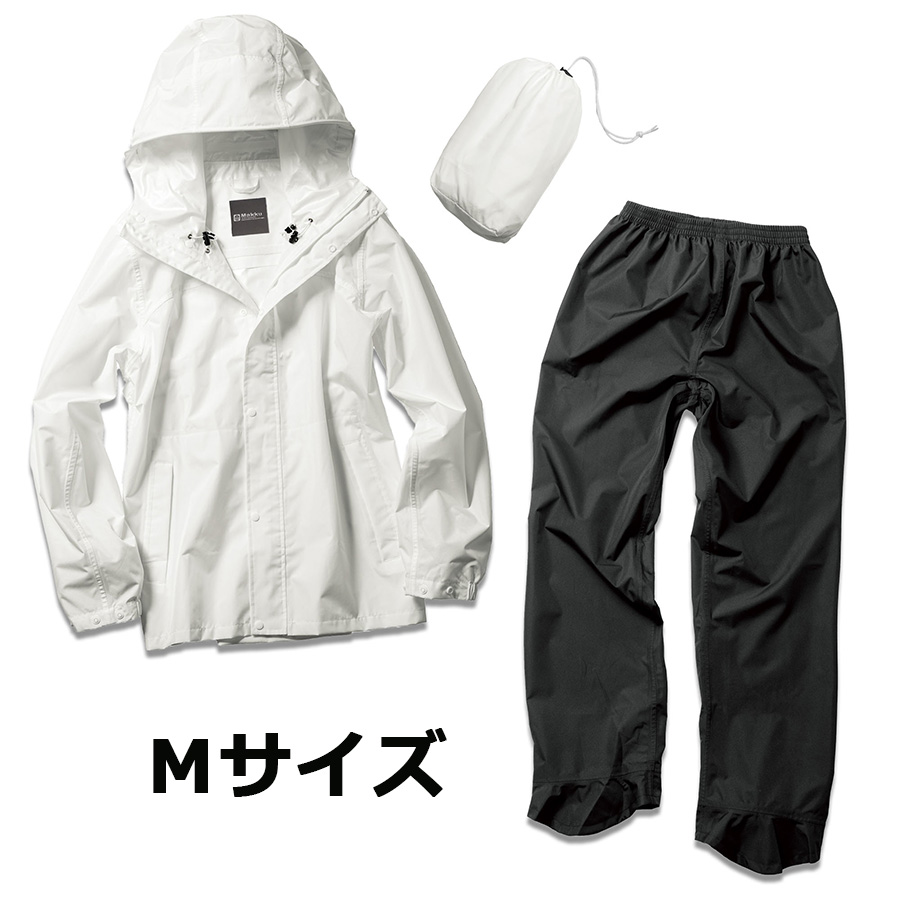 自転車 ヘルメット対応 レインコート ホワイト Mサイズ 上下セット 耐水圧10000mmH2O メンズ レディース 兼用