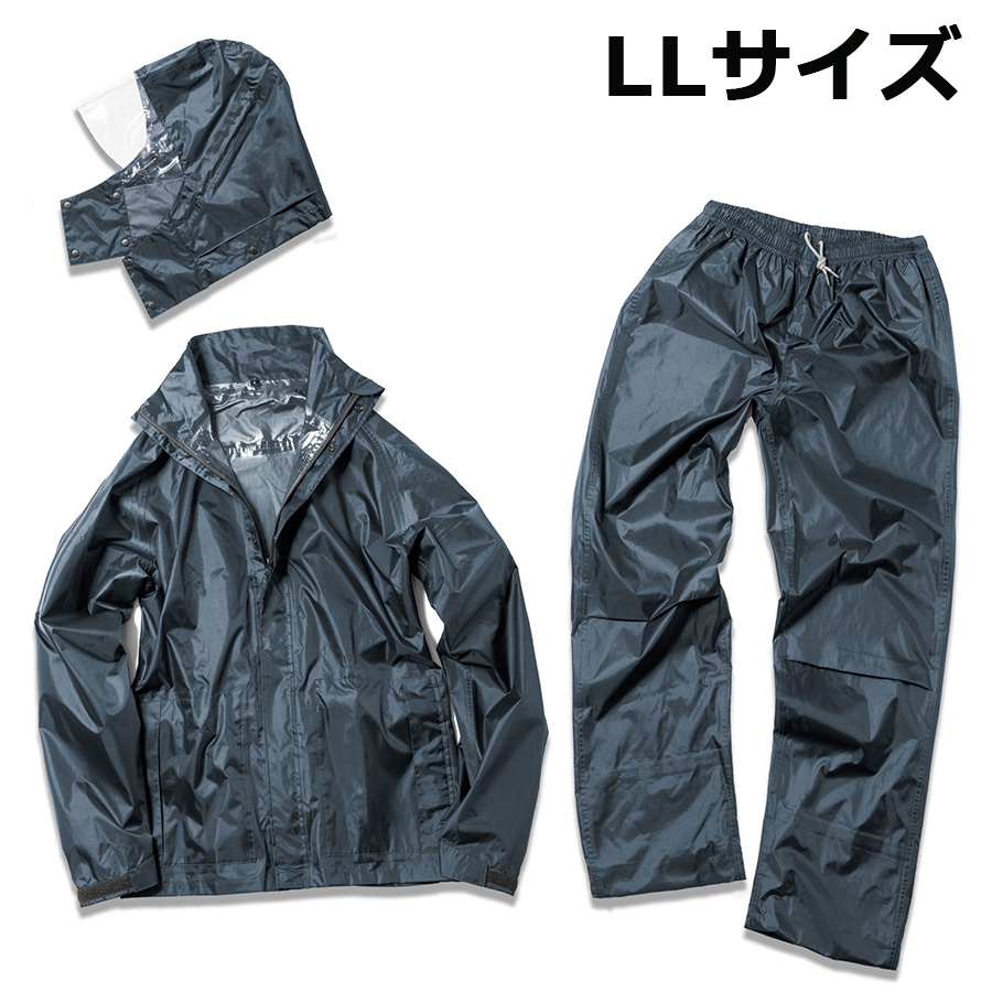 自転車 ヘルメット対応 レインウェア ネイビー LLサイズ 上下セット 耐水圧20000mmH2O メンズ レディース 兼用