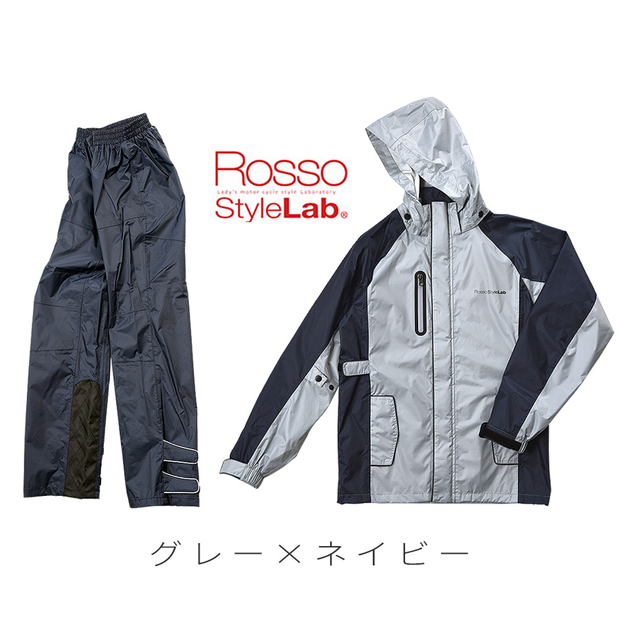 レディース レインウェア 上下セット グレー×ネイビー Sサイズ Rosso StyleLab ロッソスタイルラボ ROR-308 レインコート 透湿 防水