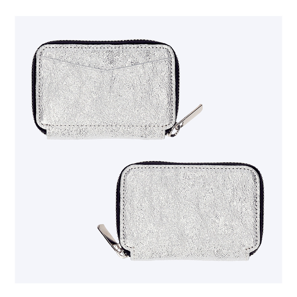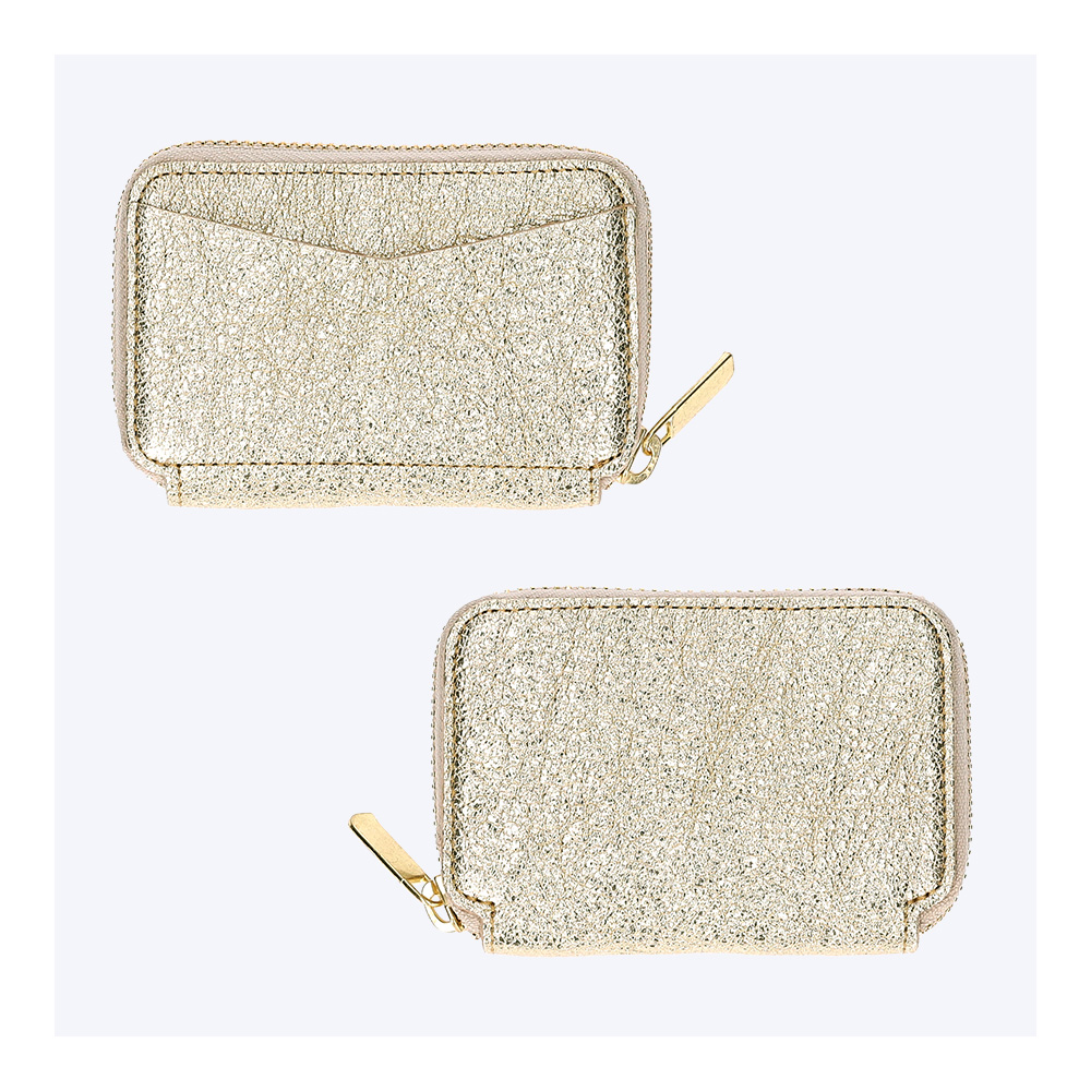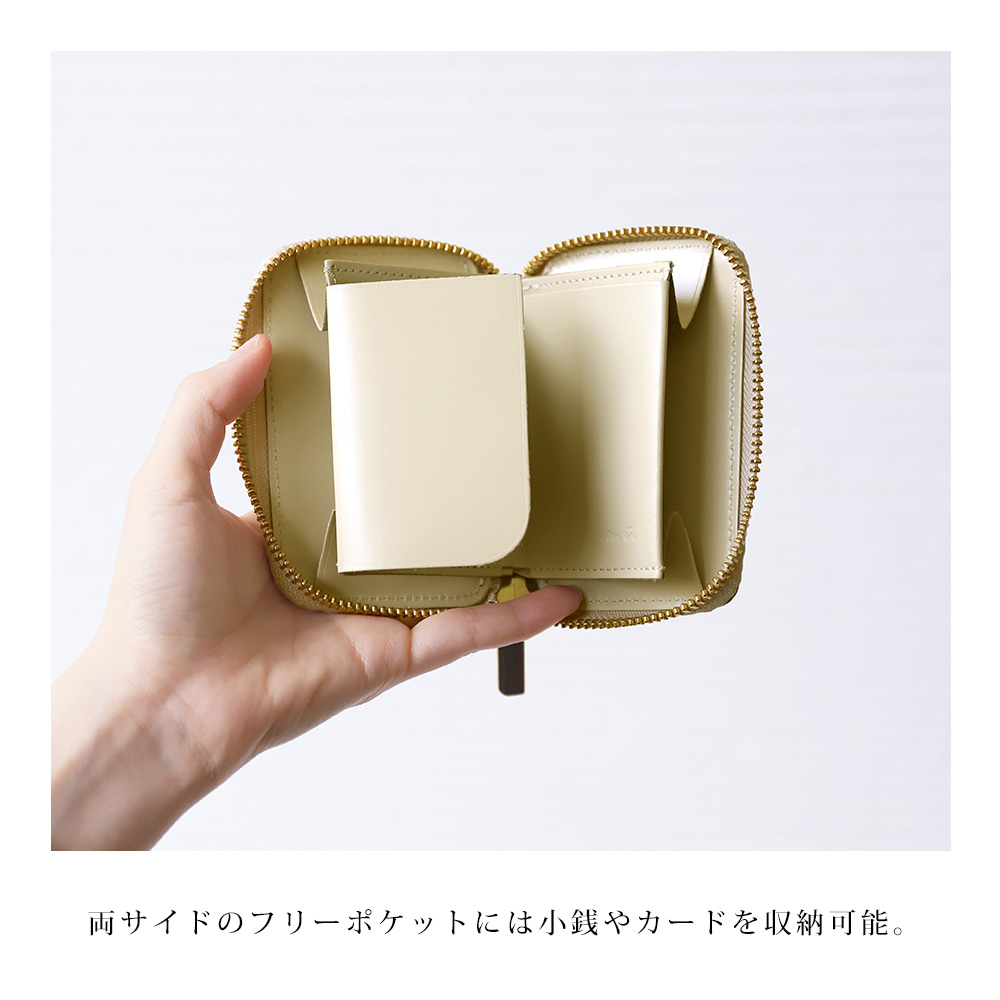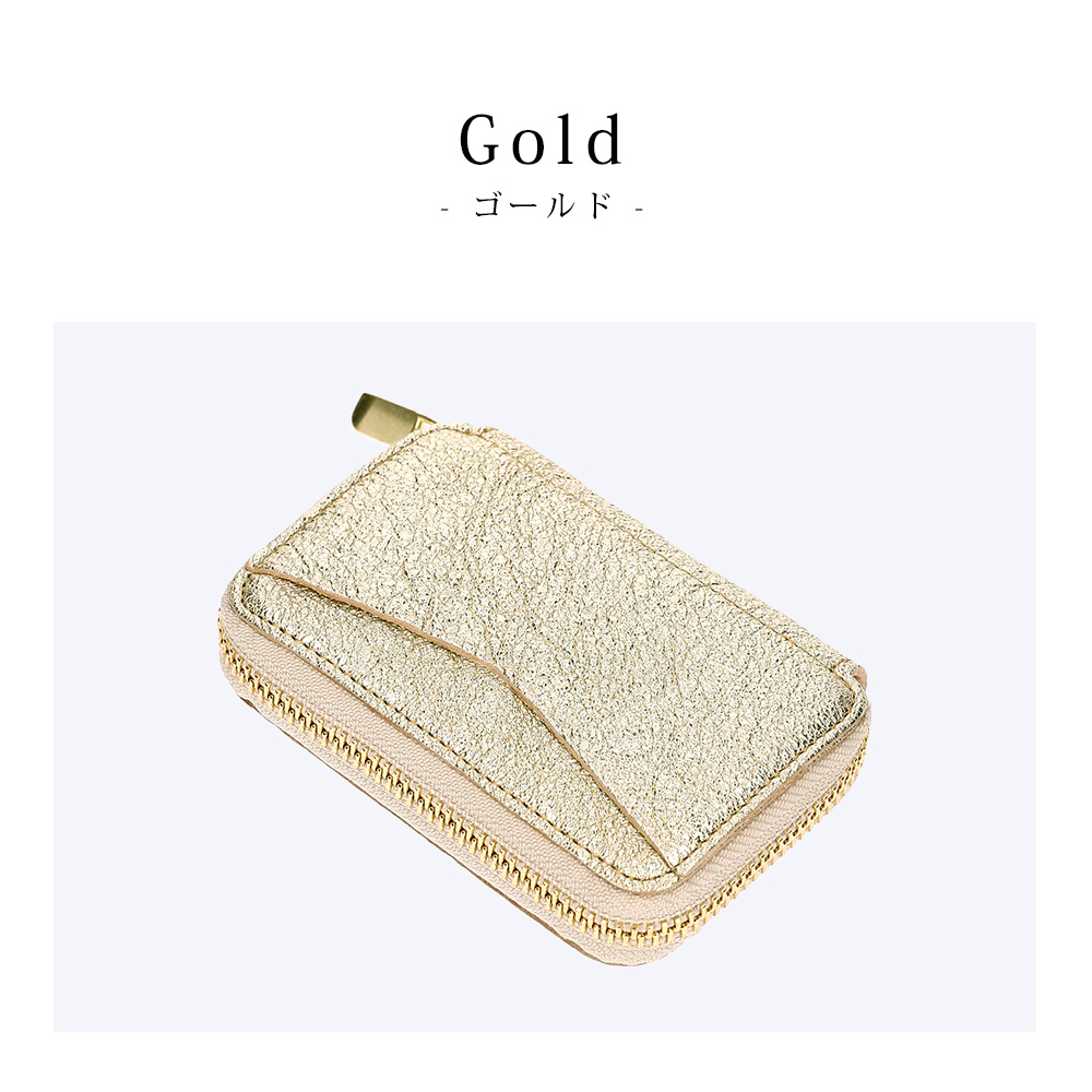 mu(ムー)「予定無し、コンセプト無し、刺激的な素材に出会えた時に自由な発想で物造りをしたい。」という思いから生まれたブランドです。箔のような質感の美しいレザーを使用しました。自然なシボ感があり、多方向に輝くコンパクト財布です。お札を折りたたまずに収納可能。おしゃれなロゴがワンポイントです。内側の両サイドについているフリーポケットには小銭やカードを収納可能。フリーポケットに小銭を入れた際に、小銭が飛び出さない設計になっています。外側のポケットはICカード等を収納可能。持ち歩きしやすいコンパクトサイズで、厚さも約2cmのためかさばりません。ゴールドとシルバーの色は、風水的にもとてもポジティブな意味をもつカラーです。手にフィットするサイズ感やいつでも持ちたくなるような使いやすさを意識しながらこだわって作られたシリーズです。