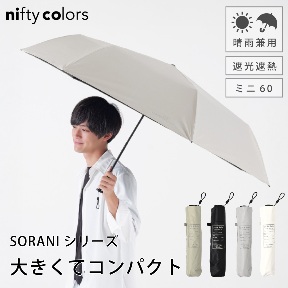 日傘 完全遮光 折りたたみ 晴雨兼用 UV対策 軽量 60cm 大きめ コンパクト ニフティカラーズ