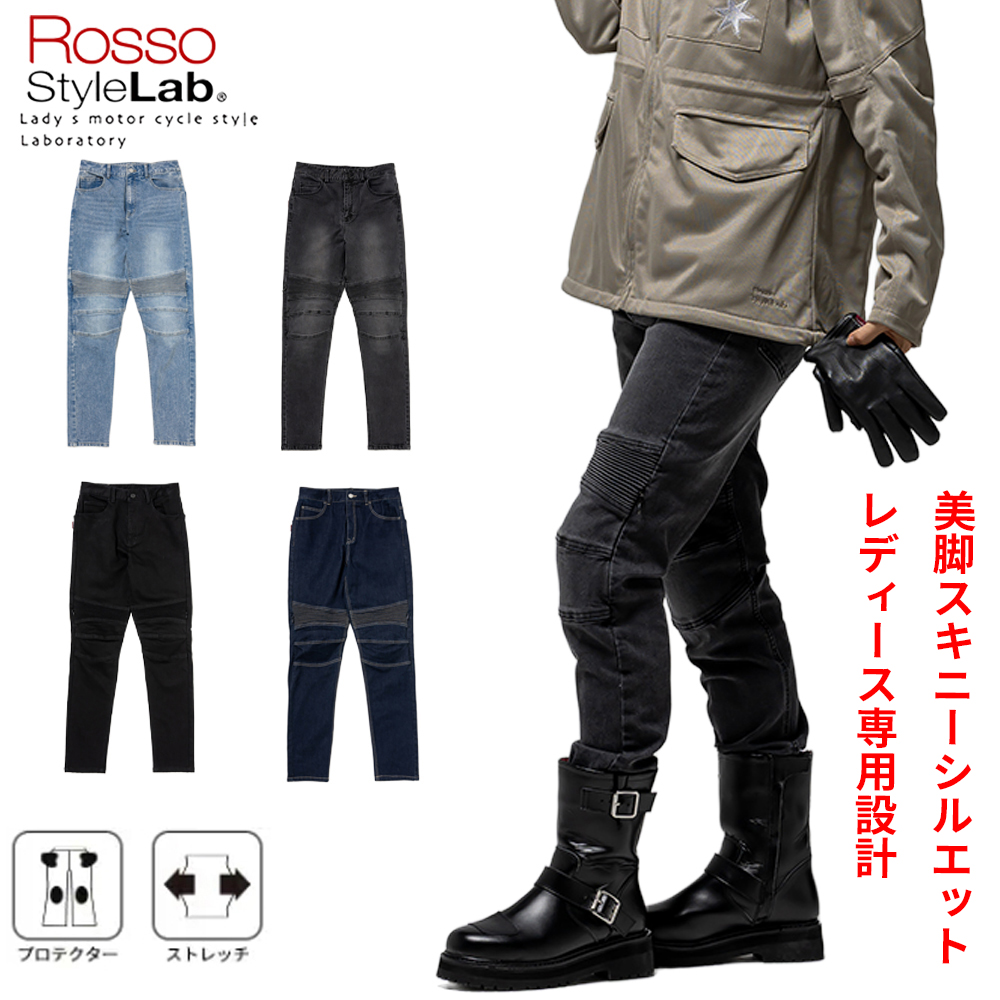 RossoStyleLab バイク用 ストレッチスキニーパンツ プロテクター標準装備 膝外入れタイプ 年中着用可 レディース ライディングパンツ 美脚 女性用