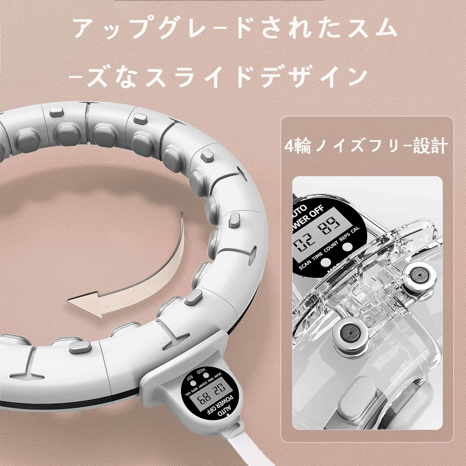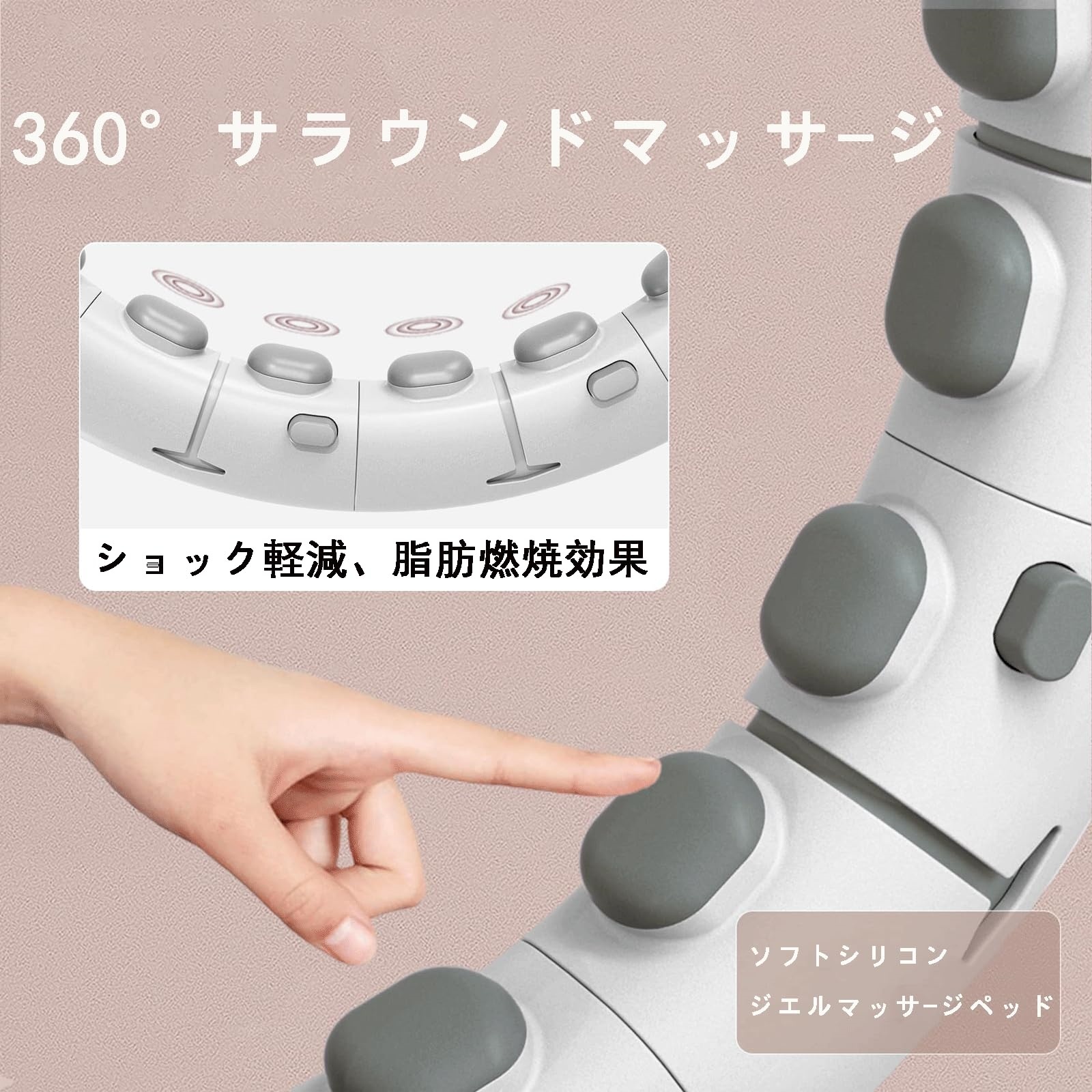 各ノードに配置されたマッサージポイントが、運動中にウエストを360°包み込むようにマッサージ。心地よい刺激で脂肪燃焼を促進し、筋肉をほぐしながら理想のボディラインへ導きます。柔らかいヘッドと衝撃吸収設計で、肌に優しく高いエクササイズ効果を実現。