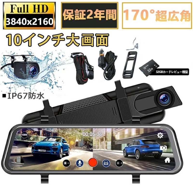 カメラ ルームミラー型 Gセンサー 2カメラ 分離 1440P 360度 ドライブレコーダー 前後 10.0インチ GPS HDR 赤外線暗視 駐車監視 ループ録画 防水防塵 音声記録
