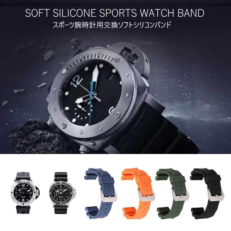 時計バンド シリコン ラバー ウォッチベルト ダイバーウォッチ 潜水 完全防水 腕時計用 スマートウォッチ 22/24mm