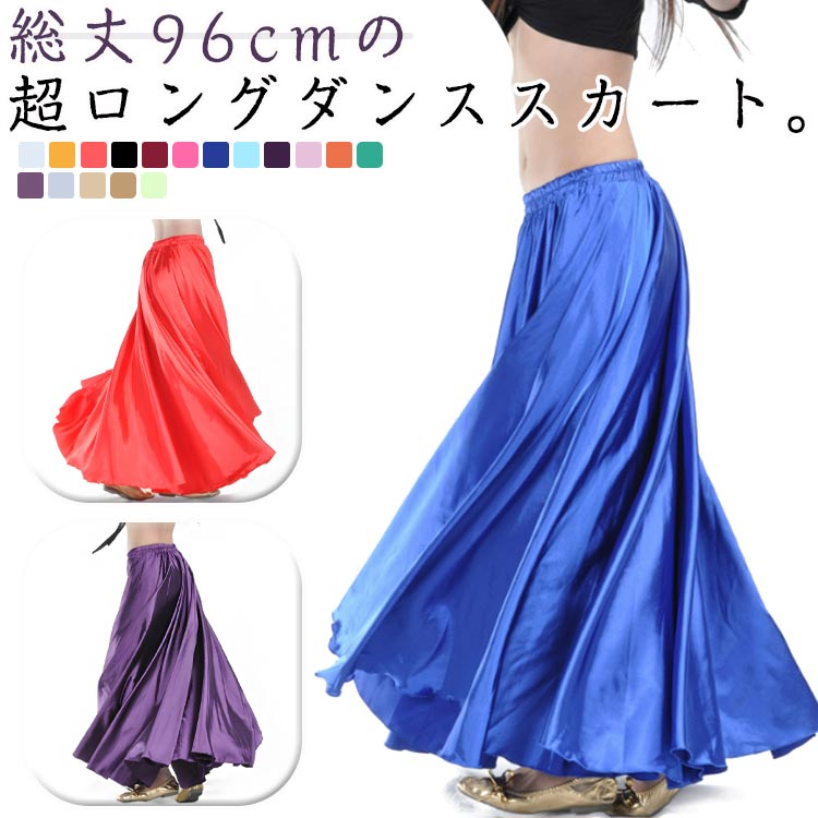 | 総丈96cmの超ロングダンススカート。 ウエスト総ゴムでらくらく。 たっぷりとしたフレアつくりできれいな女性らしい美シルエットです。 豊富なカラーバリエーション展開で団体着にもおススメ。 | |