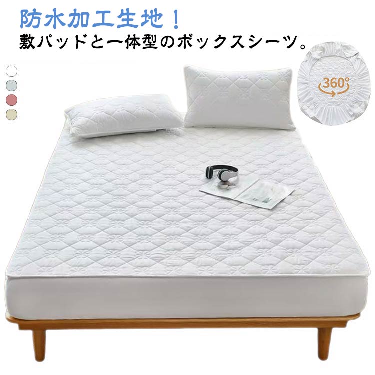| 防水加工生地!敷パッドと一体型のボックスシーツ。 介護用・お子様用・ペット用におすすめ。 おしゃれなヘリンボーンキルトは熱圧着キルトのため、 キルト部分に爪などがひっかかりにくい。 | |