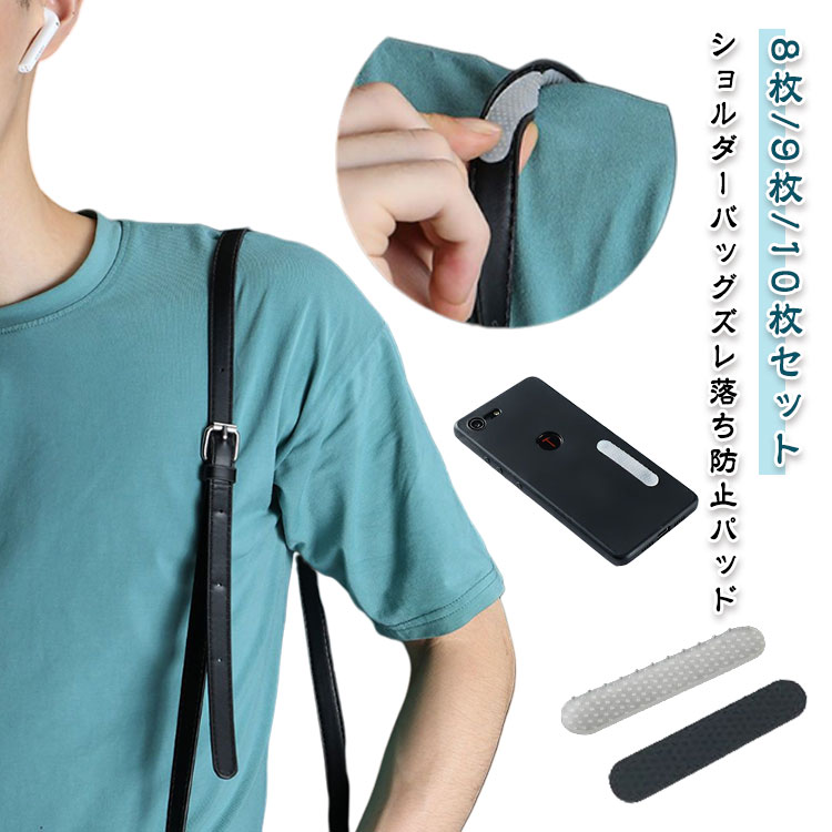| 8枚/9枚/10枚セット ショルダーバッグズレ落ち防止パッド ショルダーバッグやカメラケース等の肩からのずれ下がりを防ぎます 滑り止め付だから、かがんでもずれません。 肩の形状を人間工学に元づいて分析し、ベルトが滑らず肩全体で受けとめます。 ショルダーベルトがずれないのでバッグを肩にかけたままの移動も快適です。 | |