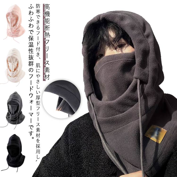 | 防寒できるフード付き、肌にやさしい厚型フリース素材を採用し、ふわふわで保温性抜群のフードウォーマーです。 便利な3WAYフードウォーマー。これ1つあれば、帽子・ネックウォーマー・フェイスガードとしてお使いいただけます。天候、風、気温の変化などに応じて、適切な着用方法を選択して、最高の防寒効果を得ることができます。 調節可能な収縮ひも!紐を引くことでフードのフィット感を調節できます。また、フェイスガードの部分は使わない時は中に入れ込んでしまうことができます。 自転車やバイクの 通勤・通学の防寒対策やもちろんアウトドア・スキーやスノーボートなどのウィンタースポーツの際にも活躍します。 フリーサイズので、男女兼用です。雪の日も、寒さから守ります。 | |