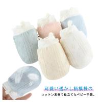 | 可愛い透かし柄模様のコットン素材で仕立てたベビー手袋。 赤ちゃんが自分のお肌を引っかいたりして傷つけないように手に被せてトラブルから守るアイテムです。 柔らかくお肌に優しい綿100%の天然素材で、赤ちゃんにもやさしいつくりになっています。 手首部分は伸縮性があり、付属のリボンを閉めることできつさを調整出来ます。 出産祝いにも最適。 | |