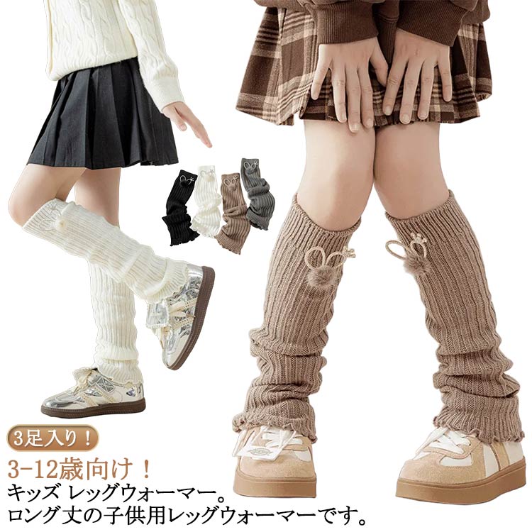 指なし 小学生 女の子 3足入り ハイソックス リブ編み ロング丈 靴下 キッズ 暖かい 冷え対策 レッグウォーマー レッグウォーマー 温活 子供用ソ