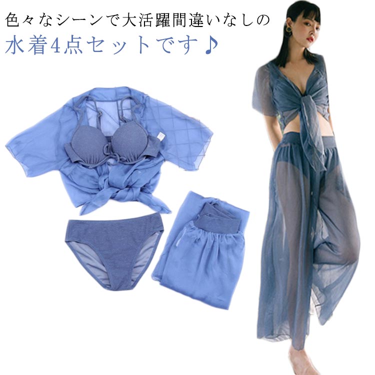 | 色々なシーンで大活躍間違いなしの水着4点セットです♪ なめらかな肌触りで丈夫な上質生地を使用しているので、着心地ばつぐん♪ 広めのラウンドネック、フレンチスリーブが華奢見せ効果&上品な着こなし。 大人の抜け感を出す!女性らしい魅力を引き出して、大胆に魅せる。 計算された抜け感で綺麗に腰周りをクロスして細くワイドパンツでスタイルアップに。 深めの股上とゆとりのあるパンツが下半身を細く見せてくれます♪ 水陸両用で使える素材だから、速乾性に優れ、お手入れも簡単♪ | |