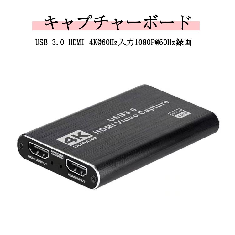 | キャプチャーボード USB 3.0 HDMI 4K@60Hz入力1080P@60Hz録画 HDMI入力用と出力用の4K@60fps パススルー機能を搭載しています HDキャプチャデバイスは、ハイエンドなデザインに基づいて作成されており、外部電源は一切不要 取付と持ち運び方法は非常に簡単で、ライブ配信、会議室、ビデオ録画など、PCでの作業に最適です USB 3.0高速テクノロジーに基づき、1つのシングルチャネルの高解像度のHDMIビデオ信号をキャプチャできます いろいろなシステム&ソフト対応 | |