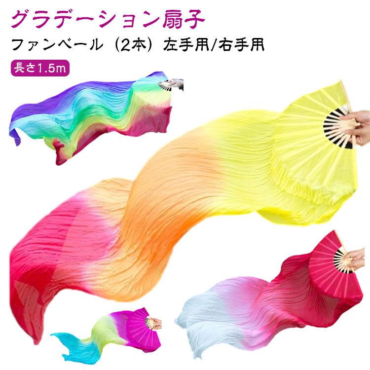ファンベール(2本)左手用/右手用 艶と光沢と透明感があるシルクライク生地、布の表面はつるつるで、肌触りはしなやかです。 超ロング扇子で踊ればあなたの踊りを惹きたてるでしょう。 チームやグループで踊れば、ゴージャスな踊りに見る人を惹きつけることまちがいなしです。 | |