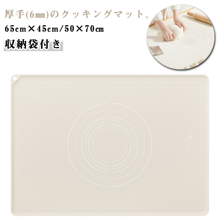 | 厚手(6mm)のクッキングマット。【65cm×45cm/50×70cm】【収納袋付き】 【大きいサイズ】パンの生地を捏ねったり、麺を打ったりしやすいマットです。 安全な食品級シリコーン素材で安心でご利用ください。 【目盛り付き】クッキングマットには大きさがわかる目盛りがついているので、生地の大きさをはかる必要もなく、作りながら大きさの確認ができます。 【製菓が便利】生地がくっつきづらく、生地をスムーズにこねる事ができます。快適にお菓子作りやパン作りが楽しめます。 【ズレにくく】作業台にピッタリと貼り付けき、ズレにくいです。お手入れは食器と同じように洗って乾かすだけ。粘着性の高い生地の洗浄も簡単です。 【柔軟な材質】安全なシリコン素材で、繰り返し使用可能です。柔らかいシリコン製なのでくるくる丸めて、小さく収納できるので邪魔になりません。商品に不備、不足、不良が御座いましたら、弊店は返金、交換することができます。お気軽に連絡ください。 | |