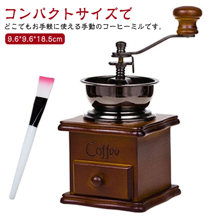 | コンパクトサイズでどこでもお手軽に使える手動のコーヒーミルです。 クラシカルな雰囲気のデザインで置き物としてもぴったり。 粗挽き・中挽き・細挽きなど、挽き加減を調節できます。 天然の木を使用することで握りやすさはもちろん、高級感のある仕上がりに。 手の感触と共に素晴らしい香りが立ちこめる、一味違ったコーヒーブレイクをお楽しみ下さい。 ※腐食・サビ・木部割れの原因になりますので本体に水をかけたり、水につけての洗浄、食器洗い乾燥機の使用は絶対にしないでください。 | |