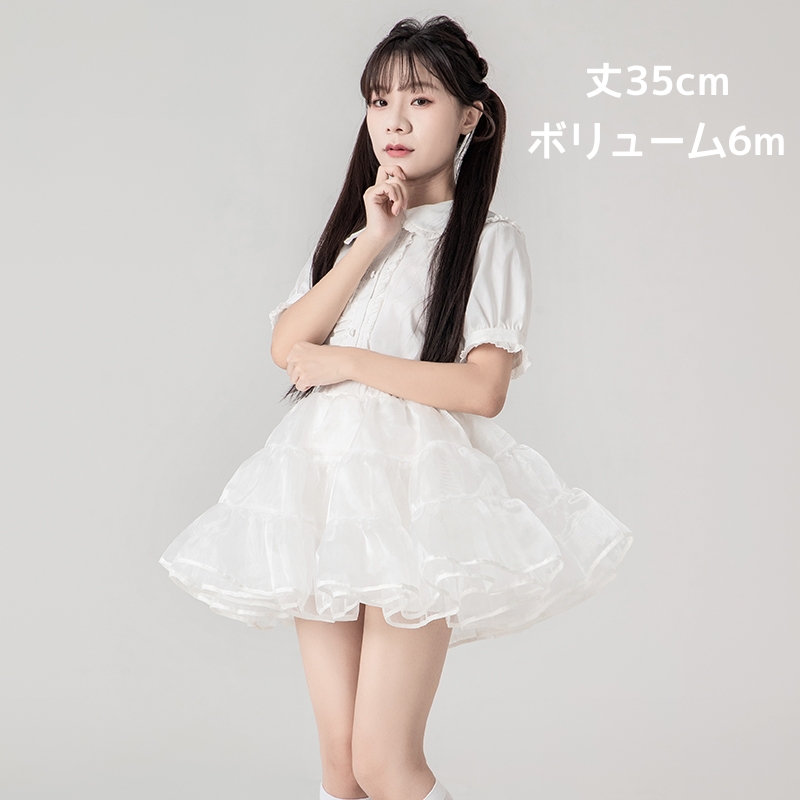 日常ボリューム パニエ ミニ丈 ロリータ ホワイト ブラック 35cm丈 ショート丈 オーガンジー ボリュームアップ フリル ステージ衣装