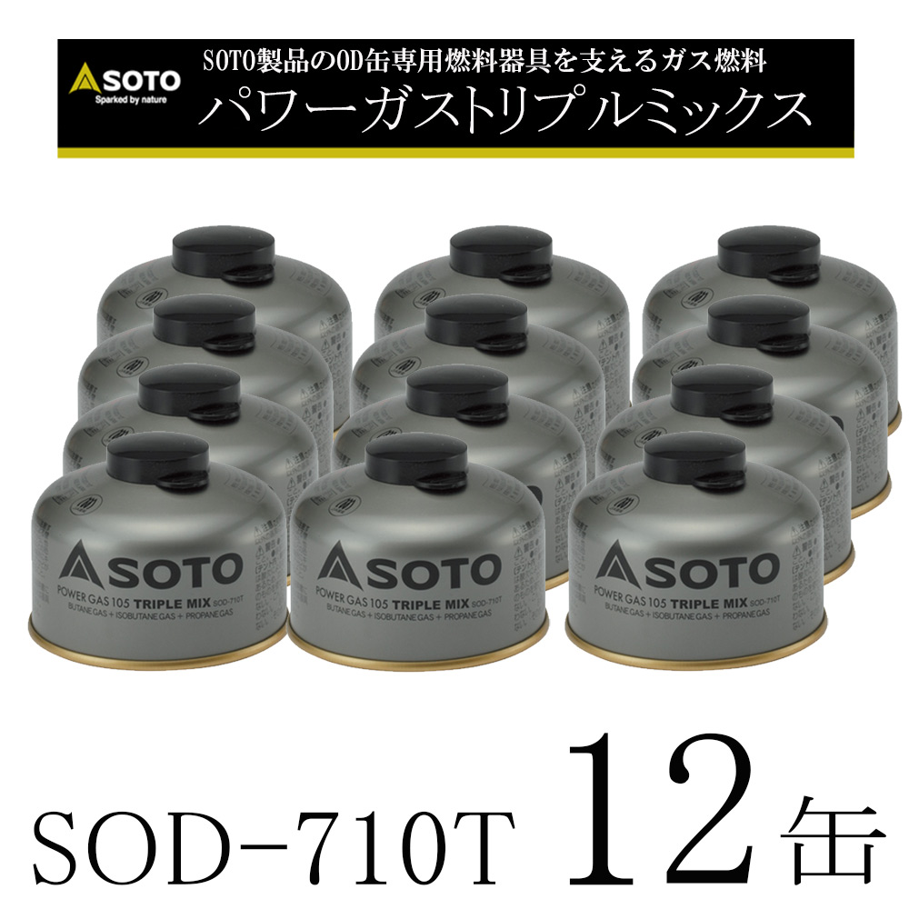 ソト SOTO SOD-710T OD缶 パワーガストリプルミックス 105 イソブタン ノルマルブタン プロパン配合のパワーガス 12本 登山 キャンプ アウトドア