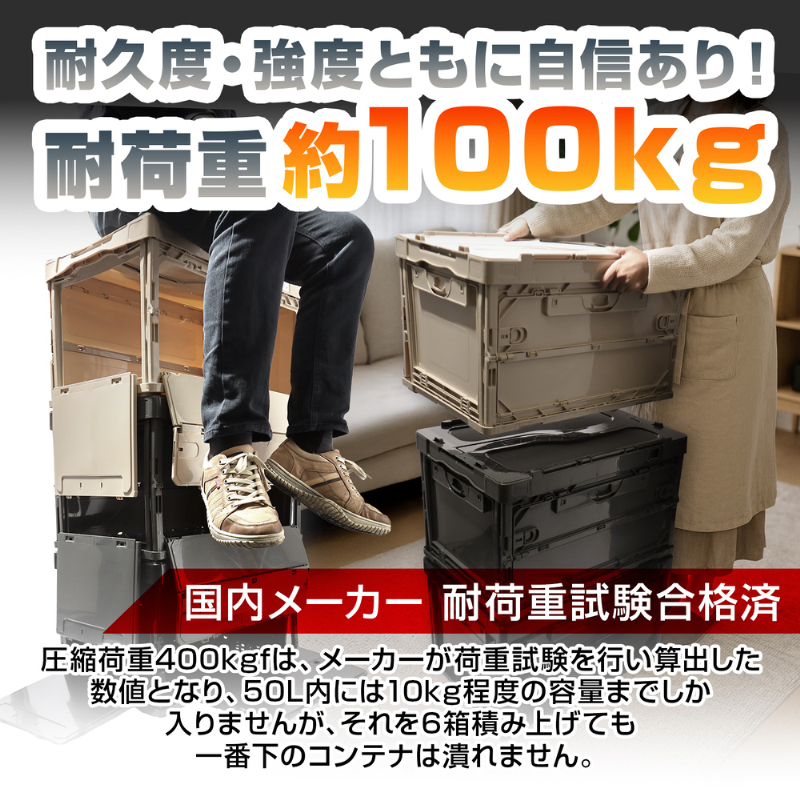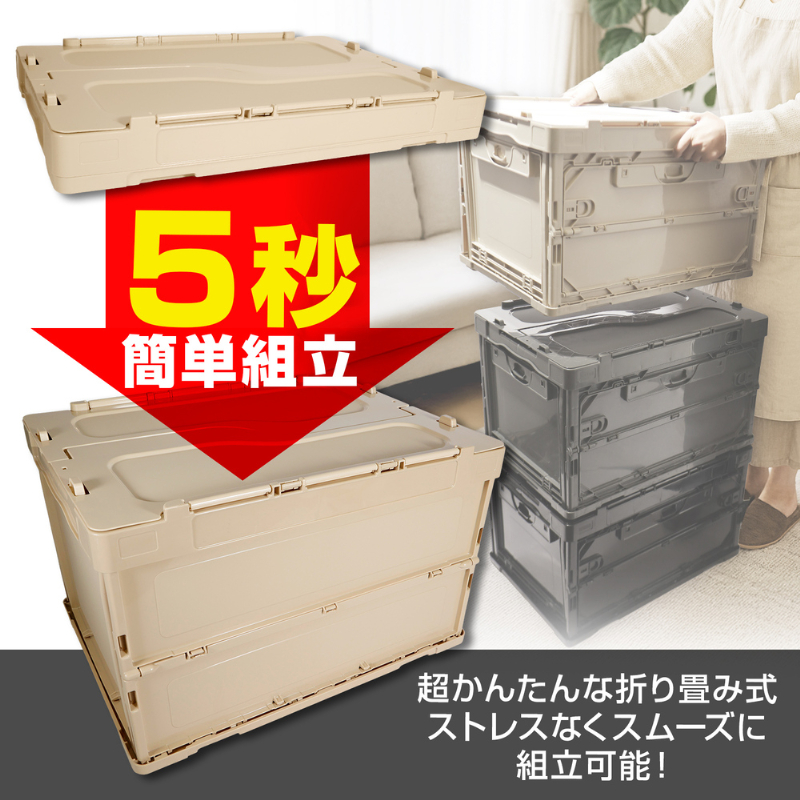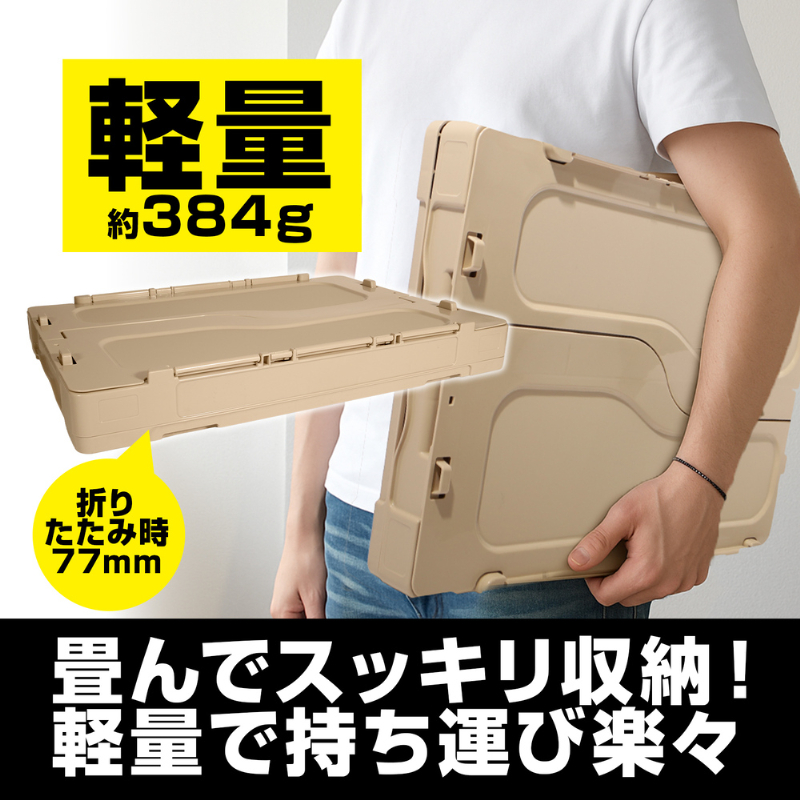 アウトドアにもお部屋の収納にも便利な、50リットル大容量&超軽量の折りたたみ式コンテナ。