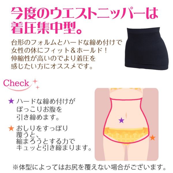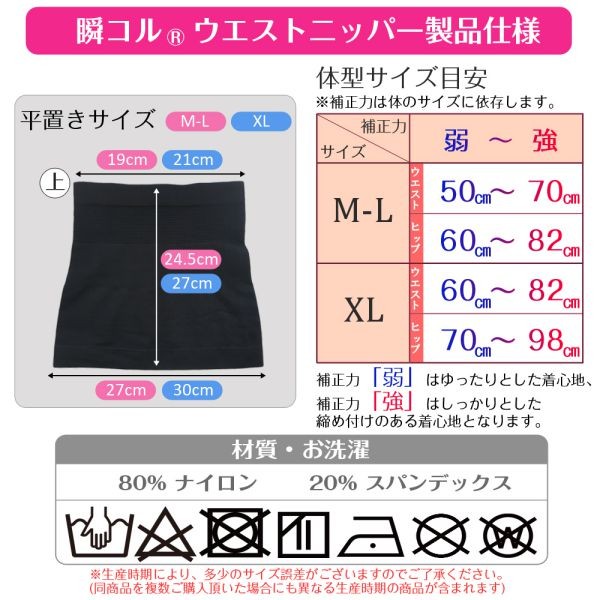 | ■商品詳細 ■商品名 ウエストニッパーSP ■ブランド 瞬コル ■サイズ(目安) M-L ・ウエスト50cm‐70cm ・ヒップ60cm‐82cm XL ・ウエスト60cm‐82cm ・ヒップ70cm‐98cm ■カラー ブラック ■材質・仕様 ナイロン 80% スパンデックス 20% ・柔らかく伸縮性の高い素材を使用している為、体にしっかりとフィットします。 ・シンプルなデザインで男女兼用にてご利用できます。 ■ご注意・ご利用方法 ・柔らかい素材のため、直接地肌の上からも着用ができます。 ・着圧の強い商品です。気分が悪くなったり体調に変化があった場合は直ちにご利用を中止されてください。 |