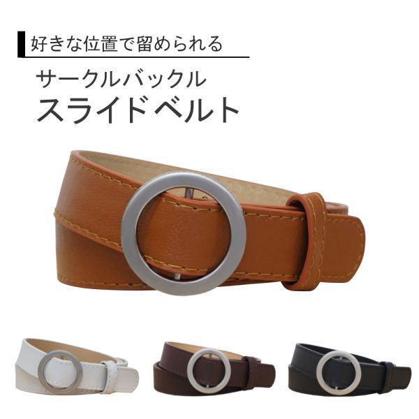 レディース ベルト スライド 無段階 調整 フリーサイズ 調節 ベルト穴なし サークル バックル ラウンド リング 丸 おしゃれ かわいい シンプル 送料無料