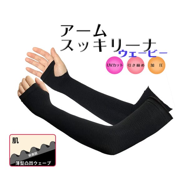 アームカバー アームシェイパー 二の腕 引き締め サポーター 加圧 腕 紫外線 UV カット 日焼け 防止 薄手 着圧 親指穴 ロング 【アームスッキリーナウェービー】