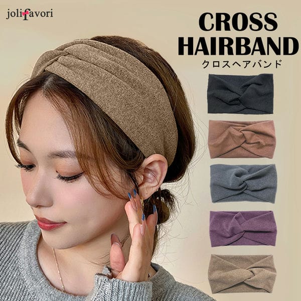 ヘアバンド クロス シンプル ヘアアレンジ まとめ 洗顔 かわいい スモーキー カラー おしゃれ ヘア バンド 髪 ターバン ブラック ブラウン グレー パープル