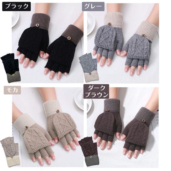 手袋 グローブ レディース 2WAY ミトン 指なし 指だし 指出し 指無し 指先 可愛い おしゃれ スマホ 対応 防寒 暖かい 冬 ブラック グレー ブラウン モカ 女性