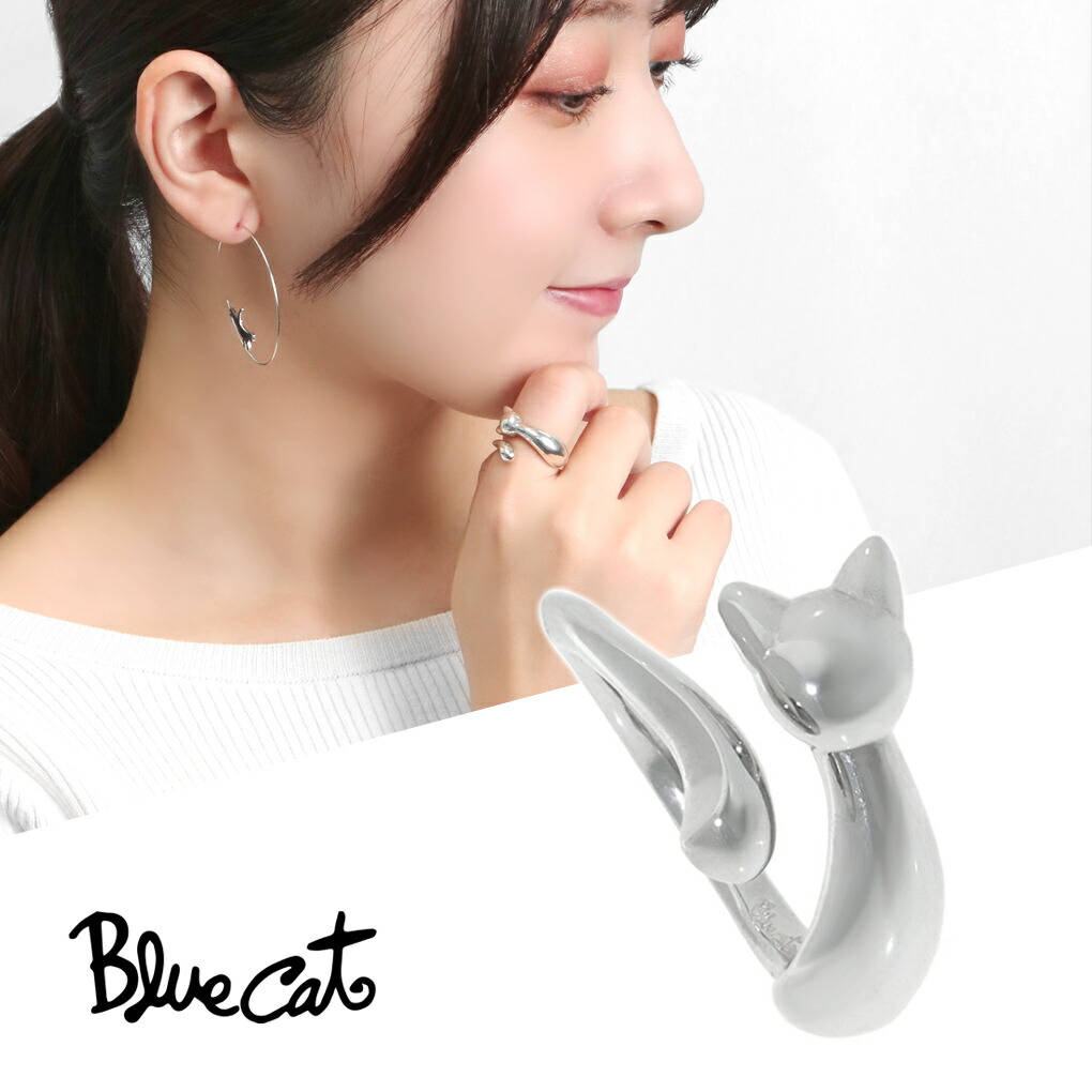 Blue Cat 猫 シルエット リング 指輪 3〜8号 フリーサイズ シルバー925 小指 関節 ねこ ネコ キャット 猫好き 上品 大人かわいい フェミニン 大人