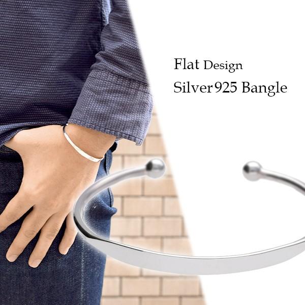 バングル メンズ シルバー925 鏡面 フラット プレート 幅0.5cm シンプル ブレスレット おしゃれ 男性 彼氏 シルバーバングル 人気 プレゼント