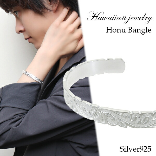 ハワイアンジュエリー ホヌ 海亀 バングル シルバー925 銀 ハワイアン ハワイ ウミガメ 彫刻 上品 大人 スマート スタイリッシュ 綺麗め