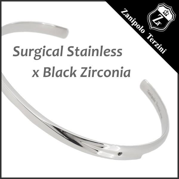 サージカルステンレス バングル メンズ カーブライン ブラックジルコニア ザニポロタルツィーニ サージカルステンレスバングル プレゼント