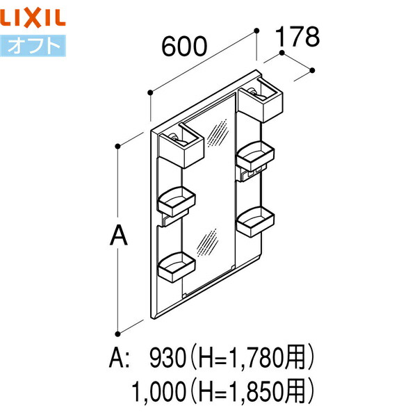 MFTX2-601YPJ リクシル LIXIL/INAX オフト 1面鏡 くもり止めコートなし 全高1780用 送料無料