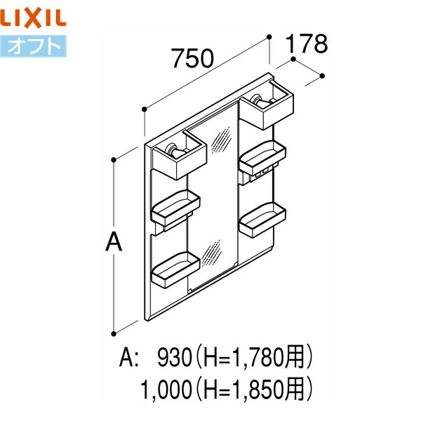 MFTX2-751YPJ リクシル LIXIL/INAX オフト 1面鏡 LED・くもり止めコートなし 全高1780用 送料無料