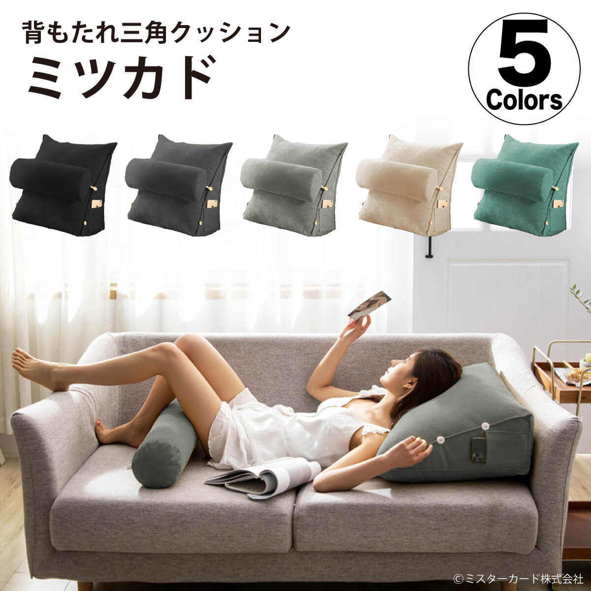 背もたれ 三角 クッション ベッド ソファー 背もたれクッション 三角クッション ミツカド ベッドの上 楽な姿勢 テレワーク 在宅 MR-SAH08