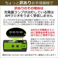 【注意事項】(ご了承願います)●ご覧のモニターの設定等や実際の光源(太陽光 白熱灯 蛍光灯等の)の条件の違いにより画面上と実際の色では異なって見える場合がございます●常に充電し続けるなど満充電状態を保たないで下さい●長期間使用しない場合は過放電を防ぐため3か月に一回使用または充電をして下さい●火気の近くや高温になる所に放置しないで下さい●落下や強い衝撃を与えないでください●ハンドルや太陽パネルに無理な力を加え操作しないでください●付属品や細部のデザイン色など予告なく変更する場合がございます