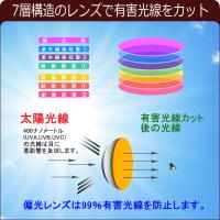 UVカット効果のあるUV400カットレンズで、大切な目を紫外線から守り、角膜へのダメージや目の周辺の肌のシミやシワを防ぎます。
