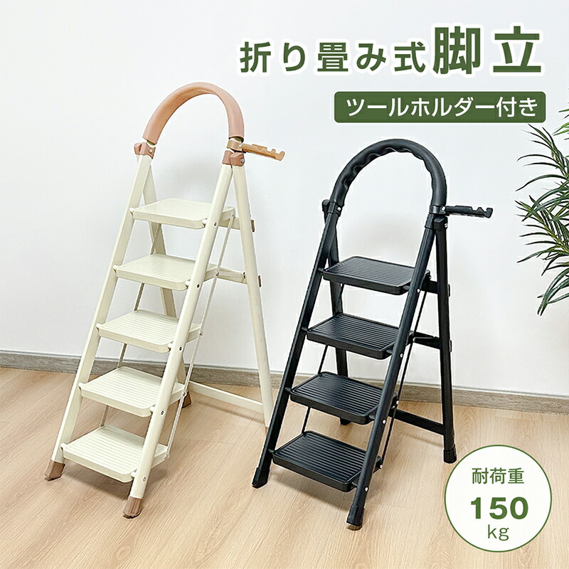 【軽くて丈夫・日常使いから作業まで】4段タイプ約3.9kg、5段タイプ約4.7kgの軽量設計で、持ち運びしやすい仕様。最大耐荷重は約150kgと頑丈さも兼ね備えており、電球交換や棚の出し入れ、ガーデニング、店舗・オフィス作業など、さまざまなシーンで活躍します。