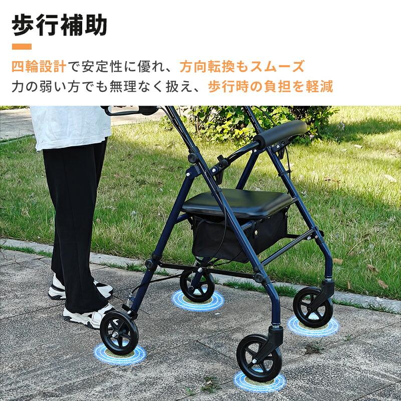 【歩行サポートと休憩を一台で】 本製品は、歩行を補助するだけでなく、疲れた時に座って休憩できる便利な2WAY設計です。クッション入りの座面と背もたれ付きで、腰かけた際も安心・快適です。